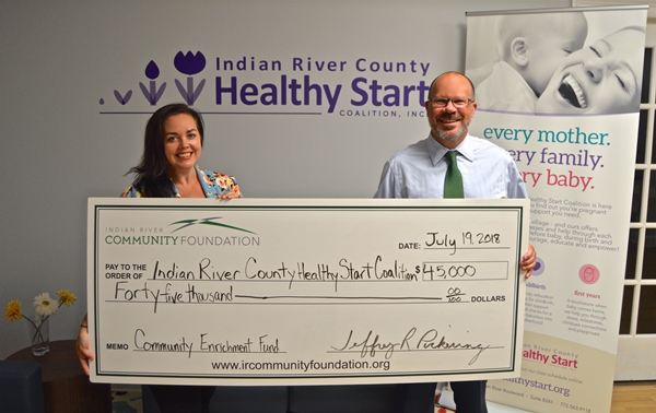 Indian River Community Foundation awarded a competitive grant of $45,000 to the Indian River County Healthy Start Coalition to partially support its Healthy Families of Indian River County program, which provides home visitations to families at risk for child abuse or domestic violence. Grant funds will be used to pay for a Family Support Worker to serve an additional 25 families annually with home visitations, parent leadership training, and community resource referrals to support overall family health and well being.