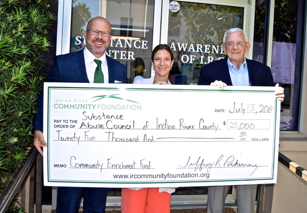 Indian River Community Foundation awarded a competitive grant of $25,000 to the Substance Abuse Council of Indian River County. Grant funds will be used to help at least 100 addicts per year through a recovery support program that engages peers to conduct weekly recover engagement groups and helps inmates access medication assisted treatment.