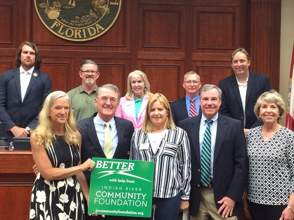 Top row left to right: Vero Beach Councilman Lange Sykes, Mayor Harry Howe, Councilwoman Laura Moss, Councilman Tony Young, and Councilman Val Zudans. Front row left to right: Foundation Accountant, Jaci Ruppert, and Immediate Past Chair, Scott Alexander. From the VBDP Board of Directors Jill Jones, Vice President, Clay Price, Treasurer and Penny Chandler Norris, Secretary.