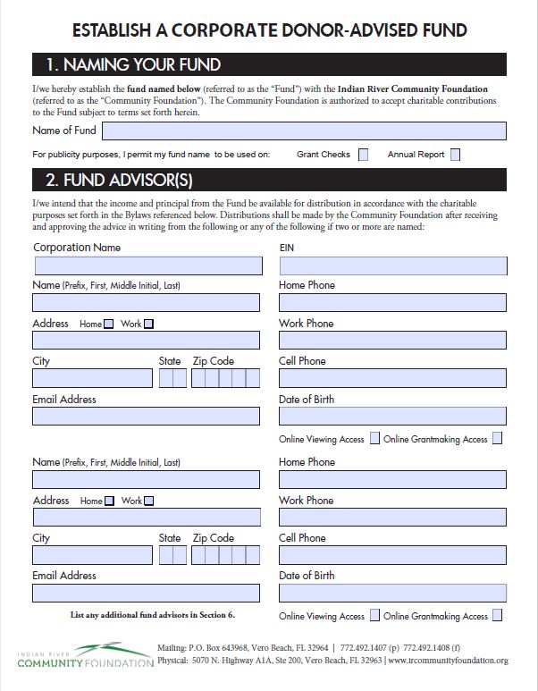 Corporate Donor Advised Fund Application